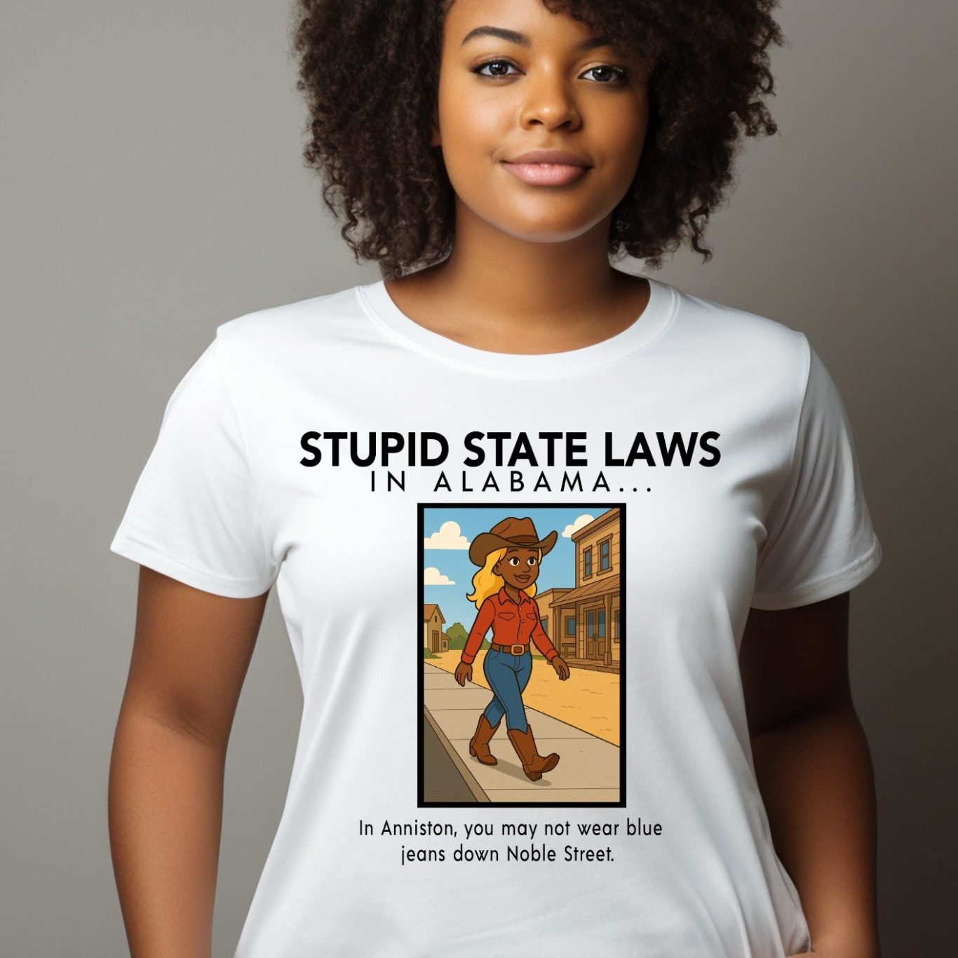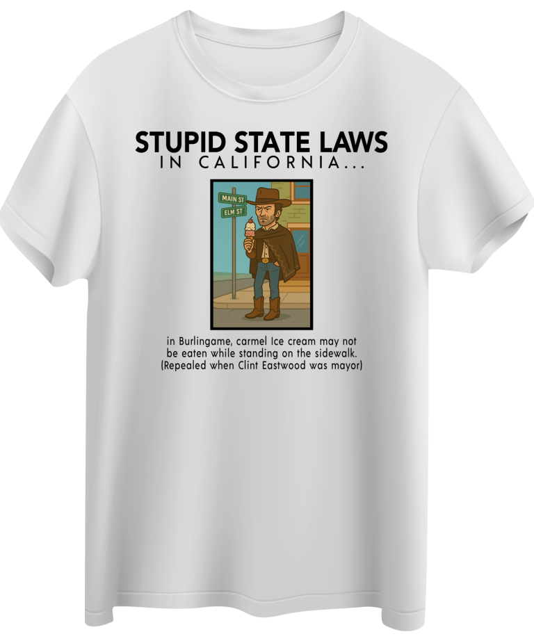 Our “Stupid State Laws” t-shirts celebrate the strange, the outdated, and the “wait—this is REAL?” rules that somehow survived history. From laws banning ice cream in back pockets to ordinances that absolutely hate donkeys in bathtubs, these shirts are walking proof that common sense once took a coffee break and never came back.